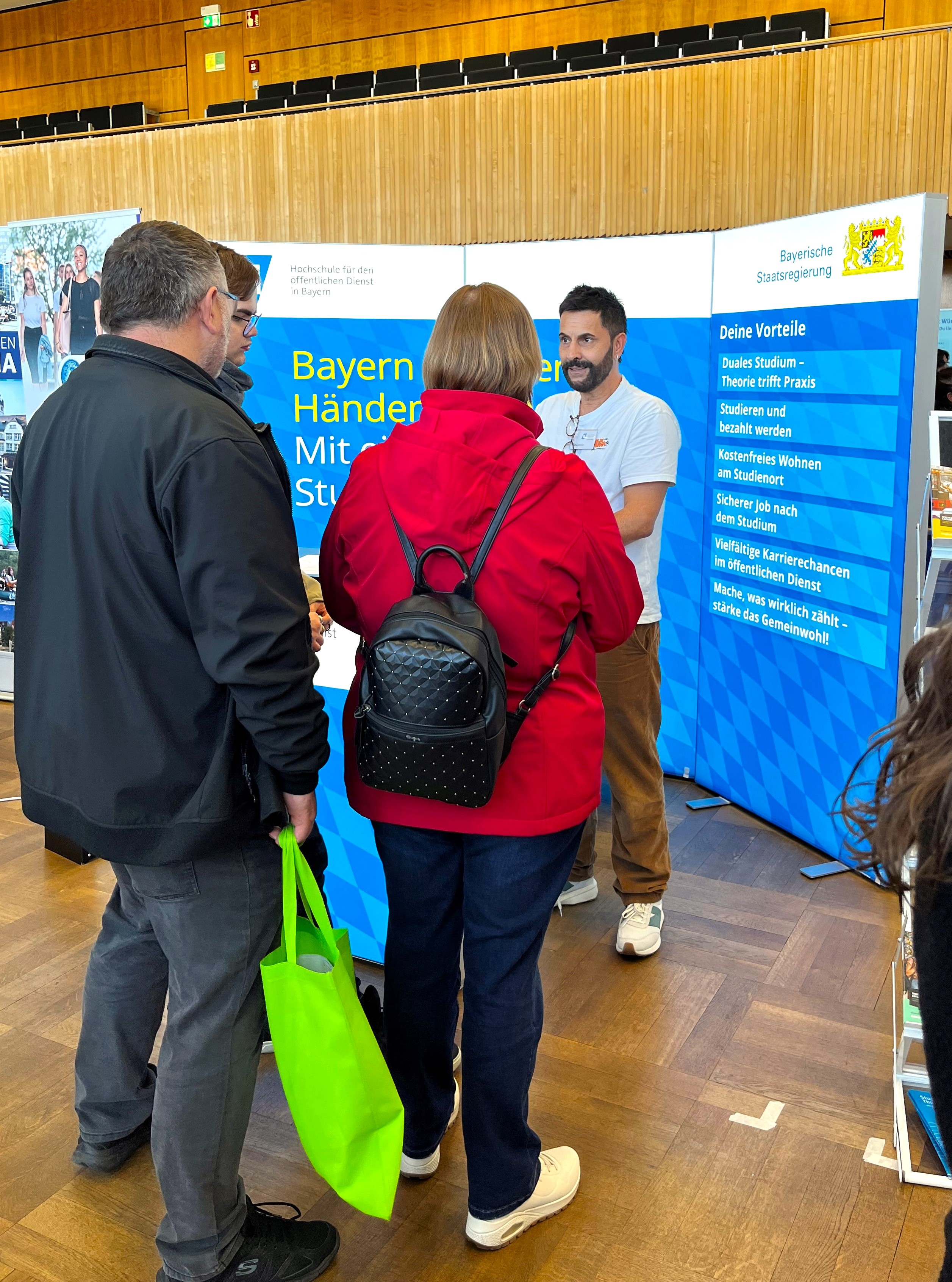 Die Hochschule für den öffentlichen Dienst ist 2025 auf vielen Studien- und Berufsmessen in ganz Bayern vertreten. Bestimmt kommen wir auch in eure Nähe! Besucht uns an unserem Messestand und informiert euch über die vielfältigen Studiengänge im öffentlichen Dienst. Das duale Studium an der HföD bietet eine ideale Balance von Theorie und Praxis, eine attraktive Vergütung von Anfang an und kostenfreie Unterkünfte an all unseren Studienorten.